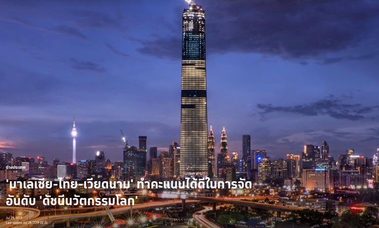 ดัชนีนวัตกรรมโลกปี 2019 เปรียบเทียบข้อมูล 129 ประเทศทั่วโลก พบ ‘มาเลเซีย-ไทย’ คะแนนติดกลุ่ม 5 อันดับแรกของประเทศรายได้ปานกลางระดับสูง ส่วน ‘เวียดนาม’ รั้งที่ 1 กลุ่มประเทศรายได้ปานกลางระดับต่ำ พร้อมย้ำอนาคตต้องมุ่งพัฒนา ‘นวัตกรรมด้านสุขภาพ’