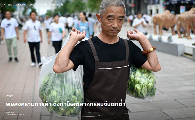 นอกจากตัวเลขอัตราการเติบโตของเศรษฐกิจจีนในไตรมาสที่ 2 ของปี 2562 จะตกต่ำสุดในรอบเกือบ 30 ปีแล้ว ผลกำไรในภาคอุตสาหกรรมของจีนในเดือนมิถุนายนที่ผ่านมา ยังตกลงร้อยละ 3.1 เมื่อเทียบกับช่วงเวลาเดียวกันของปีก่อนหน้า ส่งผลให้มูลค่าของการส่งออกลงมาอยู่ที่ราว 6 แสนล้านหยวน หรือประมาณ 2.7 ล้านล้านบาท