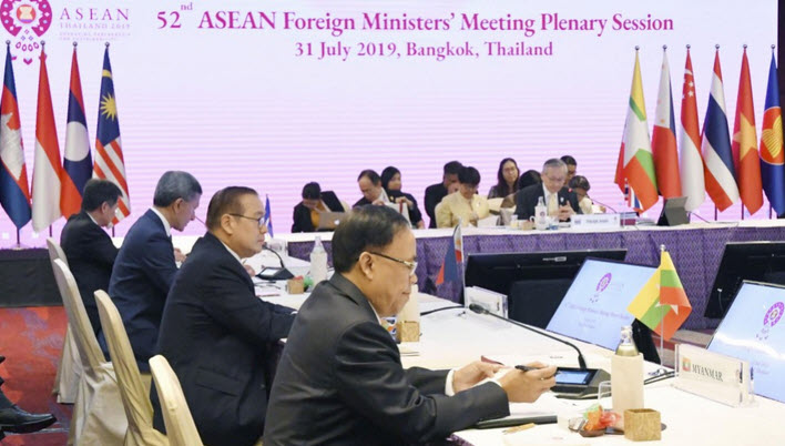 BANGKOK – Foreign ministers of 10 Southeast Asian countries began their annual meeting in Bangkok on Wednesday, with the Korean Peninsula and disputed South China Sea at the top of the agenda.