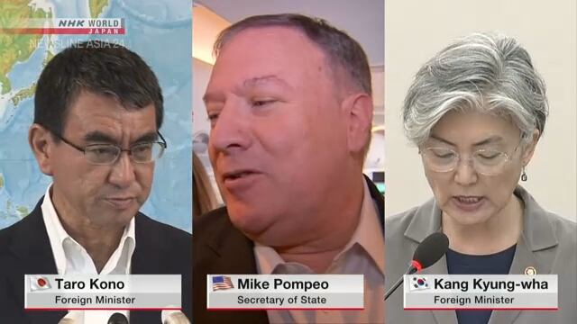 นายไมก์ ปอมเปโอ รัฐมนตรีต่างประเทศของสหรัฐ กล่าวว่า เขาจะพบกับรัฐมนตรีต่างประเทศของญี่ปุ่นและเกาหลีใต้ นอกรอบการประชุมด้านความมั่นคงระดับภูมิภาคซึ่งจะจัดขึ้นที่กรุงเทพมหานครในสัปดาห์นี้ โดยเขาอธิบายว่าการพบกันในครั้งนี้จะเป็นโอกาสในการช่วยให้ทั้ง 2 ประเทศหาทางในการเดินหน้าไปข้างหน้า