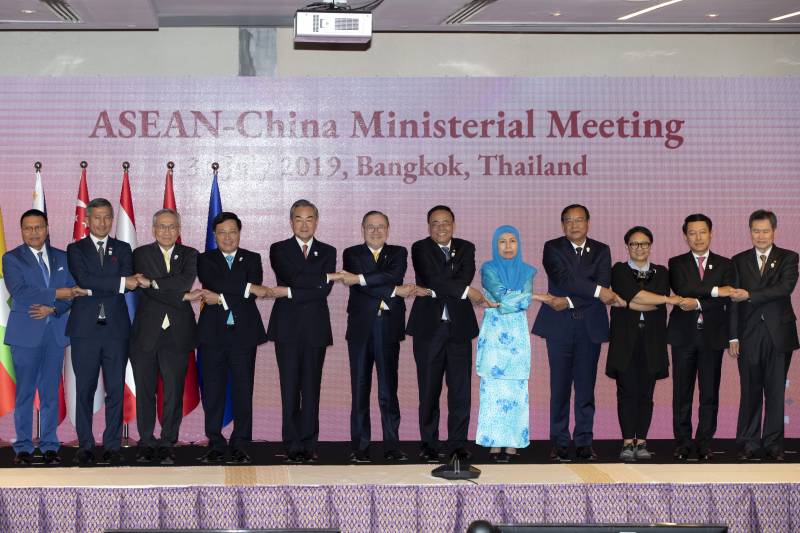 แม้นายหวังไม่ได้เอ่ยพาดพิงประเทศใด แต่แน่นอนว่าย่อมหมายถึงสหรัฐ ซึ่งนายไมค์ ปอมเปโอ รมว.กระทรวงการต่างประเทศ มีกำหนดเข้าร่วมการประชุมครั้งนี้ด้วย อนึ่ง นอกเหนือจากการประชุมร่วมกับจีนแล้ว รัฐมนตรีต่างประเทศอาเซียนยังพบหารือกับนายเซอร์เก ลาฟรอฟ รมว.กระทรวงการต่างประเทศรัสเซียด้วย ซึ่งทั้งสองฝ่ายเห็นชอบร่วมกันในหลักการ เกี่ยวกับการยกระดับความร่วมมือในทางการเมืองและเศรษฐกิจ เนื่องจากการเจรจาได้คืบหน้าอย่างต่อเนื่องจนถึงระดับของการเป็น “หุ้นส่วนทางยุทธศาสตร์” มานานหลายปีแล้ว.