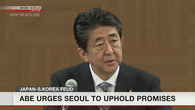 นายอาเบะกล่าวว่าเกาหลีใต้ดำเนินการแต่เพียงฝ่ายเดียวในสิ่งที่ขัดแย้งต่อข้อตกลงปี 2508 ซึ่งได้คลี่คลายเรื่องสิทธิในการเรียกร้องค่าชดใช้ในประเด็นแรงงานช่วงสงครามโลกครั้งที่ 2 ไปแล้ว