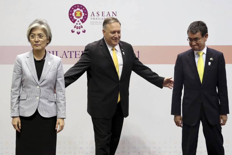 At a three-way meeting in Bangkok earlier this month, U.S. Secretary of State Mike Pompeo encouraged his Japanese and South Korean counterparts to make efforts to resolve their bitter dispute, which has shown little signs of petering out, through dialogue.