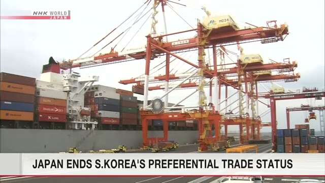 ญี่ปุ่นได้ถอนเกาหลีใต้ออกจากรายชื่อประเทศ ที่ได้สิทธิ์ใช้ขั้นตอนการส่งออก อย่างง่ายอย่างเป็นทางการ ซึ่งเป็นการเพิ่มความขัดแย้งระหว่าง 2 ประเทศที่มีอยู่ให้มากขึ้น โดยนายกรัฐมนตรีเกาหลีใต้เรียกร้องให้สู้กับความเคลื่อนไหวครั้งนี้