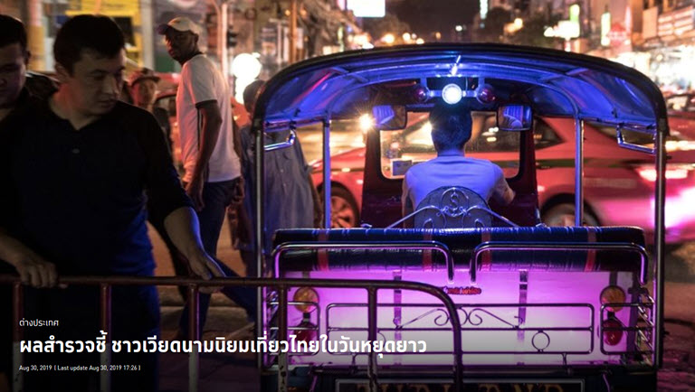 วันที่ 2 กันยายนของทุกปีเป็น ‘วันชาติเวียดนาม’ และรัฐบาลเวียดนามประกาศให้วันที่ 1-3 ก.ย.เป็นวันหยุดด้วย ทำให้บริษัทด้านการท่องเที่ยวสำรวจความคิดเห็นชาวเวียดนามว่าวางแผนจะไปเที่ยวที่ไหนกันบ้าง พบว่า ‘ไทย’ ติดอันดับต้นๆ ของจุดหมายปลายทางยอดนิยม