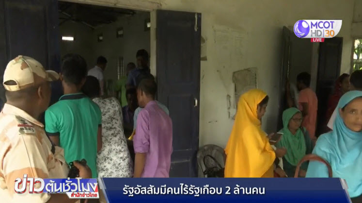 อินเดีย 31 ส.ค.-ประชากร 1.9 ล้านคนในรัฐอัสสัมของอินเดียต้องกลายเป็นคนไร้รัฐ โดยรัฐบาลท้องถิ่นได้เปิดเผยรายชื่อทะเบียนราษฎร์ เพื่อหวังกวาดล้างต่างชาติที่แทรกซึมเข้ามา คนส่วนใหญ่ในจำนวน 1.9 ล้านคนเป็นชาวมุสลิม เข้ามาอาศัยอยู่ในอินเดีย ตั้งแต่อินเดียยังเป็นอาณานิคมภายใต้การปกครองของอังกฤษ