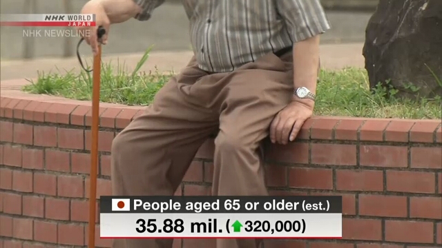 ผลการสำรวจของรัฐบาลญี่ปุ่นชี้ว่าทั้งจำนวนผู้มีอายุ 65 ปีขึ้นไปและสัดส่วนของคนกลุ่มนี้ต่อประชากรทั้งประเทศต่างทำสถิติสูงสุดเป็นประวัติการณ์