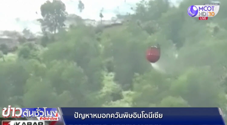 อินโดนีเซีย 22 ก.ย.- อินโดนีเซียนำน้ำขึ้นเครื่องบิน ไปทิ้งใส่บริเวณที่เกิดไฟไหม้ป่าบนเกาะสุมาตรา บรรเทาปัญหาหมอกควันพิษ