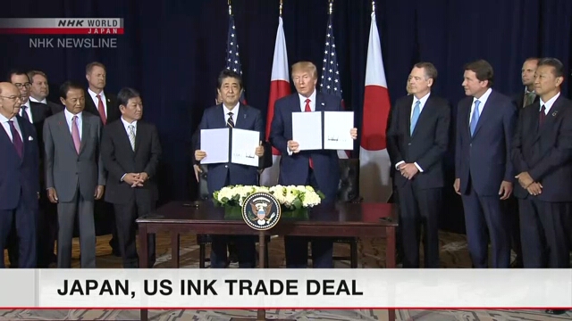 ญี่ปุ่นและสหรัฐบรรลุข้อตกลงสุดท้ายในการเจรจาด้านการค้าระดับทวิภาคี โดยนายชินโซ อาเบะ นายกรัฐมนตรีญี่ปุ่นและนายโดนัลด์ ทรัมป์ ประธานาธิบดีสหรัฐได้ลงนามในแถลงการณ์ร่วมหลังการยืนยันข้อตกลงดังกล่าว