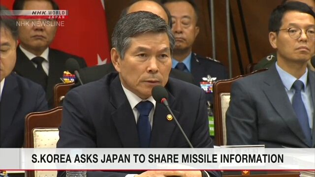 รัฐมนตรีกลาโหมของเกาหลีใต้กล่าวว่าเกาหลีใต้ได้เรียกร้องให้ญี่ปุ่นแบ่งปันข้อมูลเกี่ยวกับการยิงสิ่งที่ดูเหมือนว่าจะเป็นขีปนาวุธที่ยิงจากเรือดำน้ำของเกาหลีเหนือ