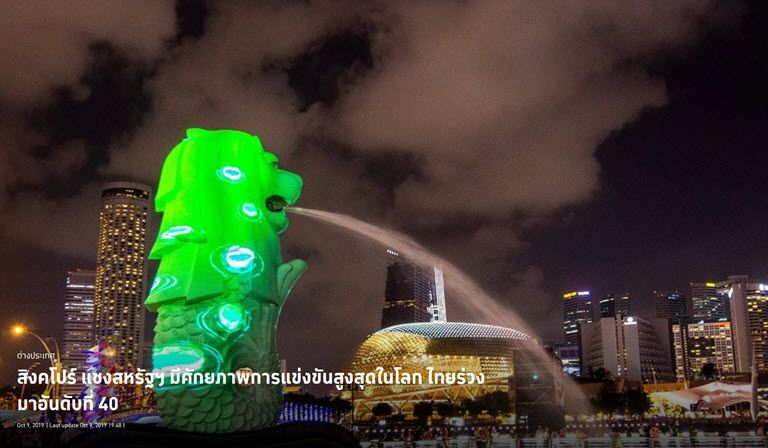 ‘เวิลด์อีโคโนมิกฟอรัม’ เผยผลจัดอันดับศักยภาพการแข่งขันทางเศรษฐกิจปี 2019 เผยสิงคโปร์แซงสหรัฐฯ ขึ้นเป็นอันดับหนึ่งหลังสงครามการค้า ไทยอยู่อันดับที่ 40 ร่วงลงจากปีที่แล้ว 2 อันดับ ด้านเวียดนามในอันดับที่ 67 มีพัฒนาการมากที่สุด