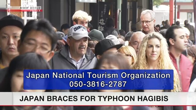 รัฐบาลญี่ปุ่นกำลังเพิ่มการให้ข้อมูลเป็นภาษาต่างประเทศเกี่ยวกับพายุไต้ฝุ่นฮากีบิสที่กำลังเคลื่อนตัวเข้าใกล้ญี่ปุ่น รวมถึงเกี่ยวกับผลกระทบที่อาจมีต่อการคมนาคมขนส่ง