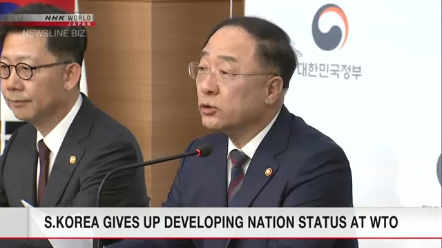 เกาหลีใต้กล่าวว่าจะสละสิทธิพิเศษในฐานะประเทศกำลังพัฒนาที่ได้รับภายในองค์การการค้าโลก การตัดสินใจนี้มีขึ้นหลังจากที่สหรัฐวิพากษ์วิจารณ์แสดงความไม่พอใจในเรื่องนี้