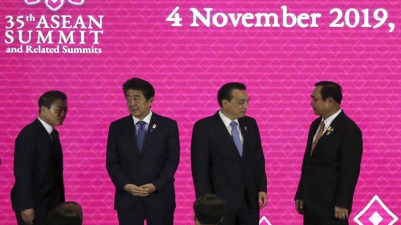 โซล 4 พ.ย.- โฆษกประธานาธิบดีมุน แจอินของเกาหลีใต้เผยว่า ประธานาธิบดีมุนเห็นพ้องกับนายกรัฐมนตรีชินโซ อาเบะของญี่ปุ่นเรื่องใช้การเจรจาแก้ไขปัญหาทวิภาคี ระหว่างพบนอกรอบการประชุมสุดยอดสมาคมประชาชาติเอเชียตะวันออกเฉียงหรืออาเซียนครั้งที่ 35 และการประชุมสุดยอดที่เกี่ยวข้องที่ไทย