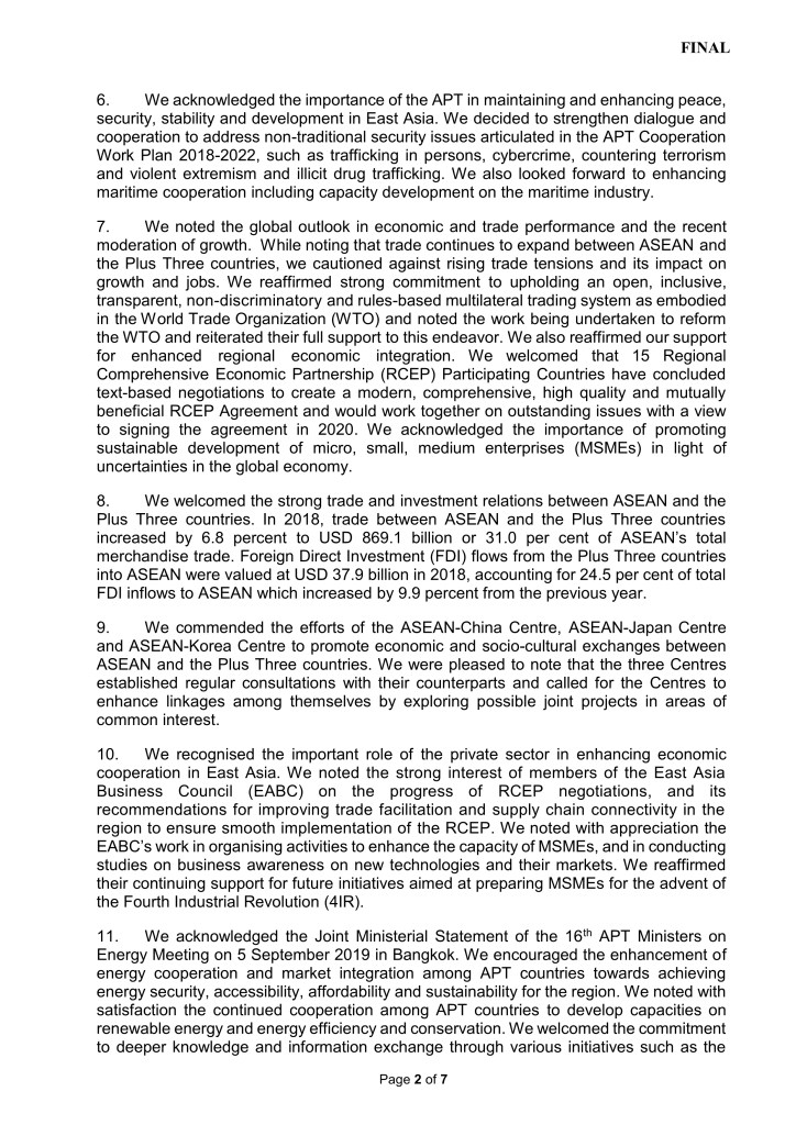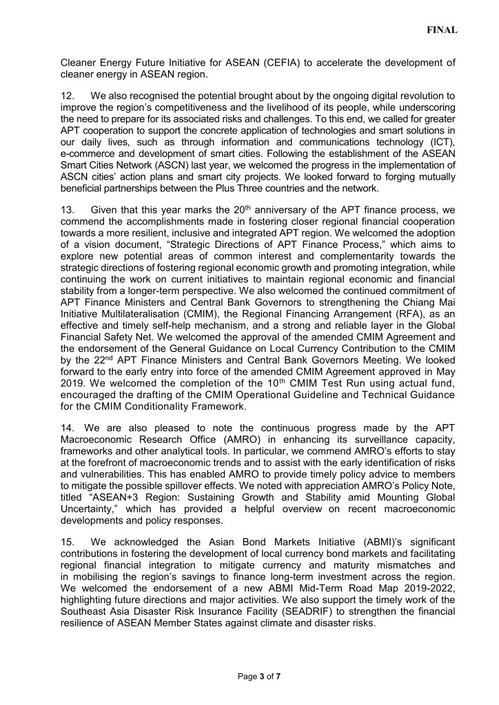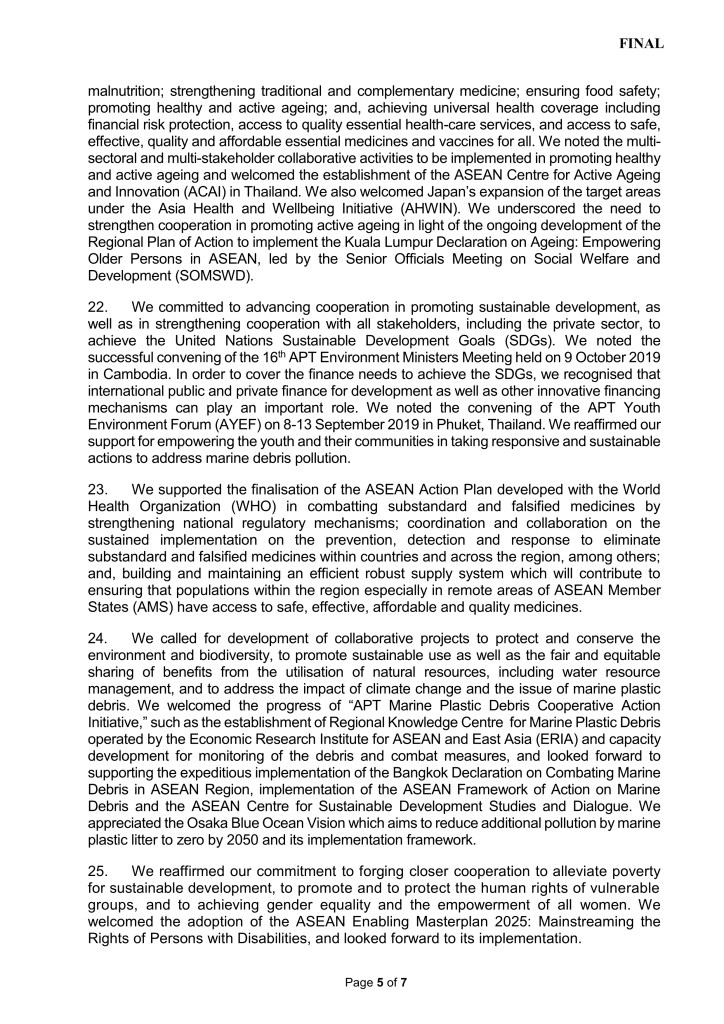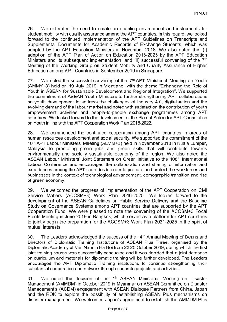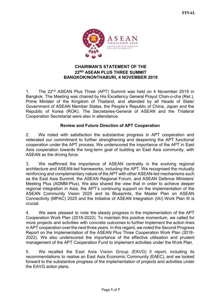November 6, 2019November 6, 2019 apecasc CHAIRMAN’S STATEMENT OF THE 22ND ASEAN PLUS THREE SUMMIT BANGKOK/NONTHABURI, 4 NOVEMBER 2019 5 พ.ย. 2562 17:34:31 กระทรวงการต่างประเทศ CR: กระทรวงการต่างประทศ Share this: Share on X (Opens in new window) X Share on Facebook (Opens in new window) Facebook Like Loading...