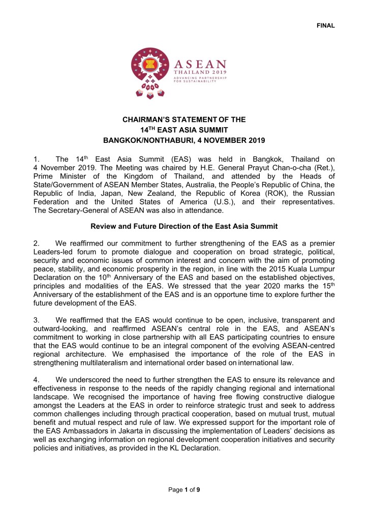 November 6, 2019November 6, 2019 apecasc CHAIRMAN’S STATEMENT OF THE 14TH EAST ASIA SUMMIT BANGKOK/NONTHABURI, 4 NOVEMBER 2019 5 พ.ย. 2562 17:37:51 กระทรวงการต่างประเทศ CR: กระทรวงการต่างประเทศ Share this: Share on X (Opens in new window) X Share on Facebook (Opens in new window) Facebook Like Loading...
