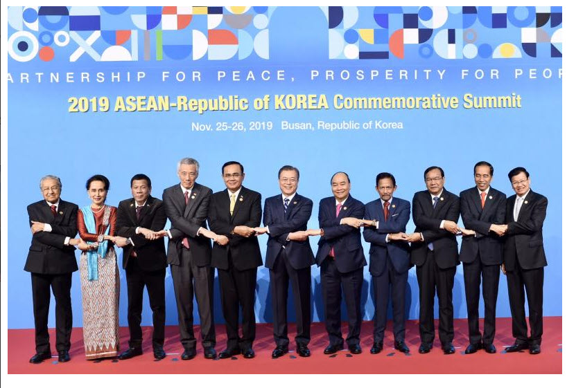 (26 พ.ย. 2562) เวลา 09.30 น. ตามเวลาท้องถิ่น ณ อาคารการประชุม ศูนย์การประชุมและนิทรรศการนครปูซาน สาธารณรัฐเกาหลี พลเอก ประยุทธ์ จันทร์โอชา นายกรัฐมนตรีและรัฐมนตรีว่าการกระทรวงกลาโหม เข้าร่วมการประชุมสุดยอดอาเซียน-สาธารณรัฐเกาหลี สมัยพิเศษ ครั้งที่ 3 โดยการประชุมเต็มคณะแบ่งออกเป็น 2 ช่วง ได้แก่ ช่วงที่ 1 หัวข้อ ASEAN-ROK 30&30 และ ช่วงที่ 2 หัวข้อ Enhancing Connectivity toward Prosperity and Sustainability