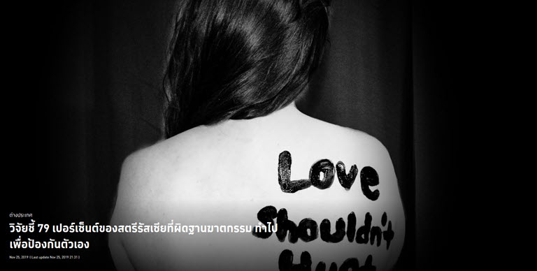 สำนักข่าวรัสเซียเผยผลการศึกษาพบว่า 79 เปอร์เซ็นต์ของสตรีผู้ต้องโทษคดีฆ่าผู้อื่นโดยไตร่ตรอง ทำไปเพื่อป้องกันตัวเองจากความรุนแรงในครอบครัว