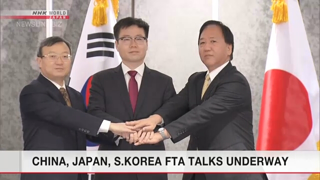เจ้าหน้าที่ด้านการค้าจากจีน ญี่ปุ่น และเกาหลีใต้กำลังเจรจาเกี่ยวกับข้อตกลงการค้าเสรีที่กรุงโซลของเกาหลีใต้ นับเป็นการเจรจาครั้งที่ 16 ตั้งแต่ที่เริ่มขึ้นเมื่อปี 2556