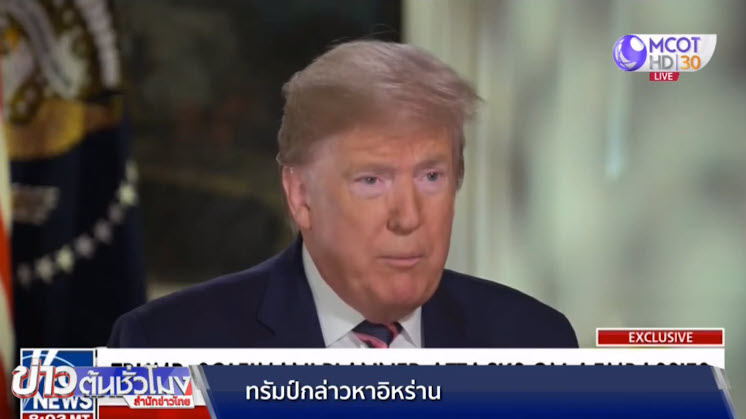 สหรัฐ 11 ม.ค. – ปธน.โดนัลด์ ทรัมป์ กล่าวหานายพลกัสเซ็ม โซไลมานี ของอิหร่าน ว่ามีแผนจะโจมตีสถานทูตสหรัฐ 4 แห่ง และรัฐบาลสหรัฐได้ประกาศเพิ่มมาตรการคว่ำบาตรต่ออิหร่านแล้ว