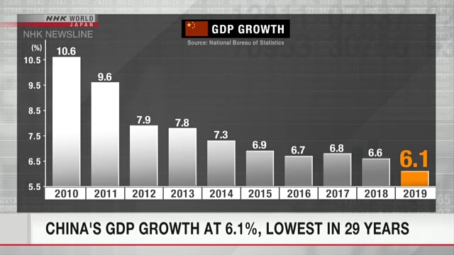 ผลิตภัณฑ์มวลรวมภายในประเทศ หรือ GDP ของจีน ซึ่งเป็นประเทศที่เศรษฐกิจใหญ่เป็นอันดับ 2 ของโลก เติบโตในอัตราต่ำสุดเป็นประวัติการณ์ในรอบ 29 ปี หลังจากความขัดแย้งทางการค้ากับสหรัฐที่ดำเนินต่อเนื่องถึง 2 ปี