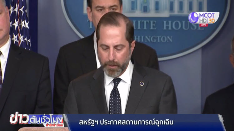 สหรัฐ 1 ก.พ.- สหรัฐประกาศสถานการณ์ฉุกเฉินด้านสาธารณสุข เนื่องจากเชื้อไวรัสโคโรนาสายพันธุ์ใหม่ กำลังระบาดอย่างหนักในจีนได้แพร่ระบาดหลายประเทศทั่วโลก