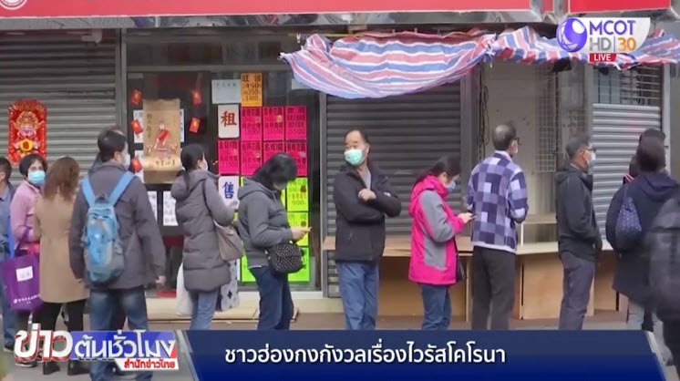 ชาวฮ่องกง มารอต่อแถวที่หน้าร้านขายยา เพื่อรอซื้อหน้ากากอนามัย ซึ่งกลายเป็นสินค้าขายดีและขาดตลาด ชาวฮ่องกงคนหนึ่งบอกว่า การสวมหน้ากากอนามัย เป็นเพียงวิธีการเดียวที่ป้องกันตัว จากการติดเชื้อไวรัสโคโรนา และหากไม่สามารถหาซื้อหน้ากากอนามัยได้ ก็ไม่รู้ว่าจะต้องทำอย่างไร ทำให้รู้สึกกังวลอย่างมาก ต่อสถานการณ์แพร่ระบาดในขณะนี้ ขณะเดียวกันชาวฮ่องกงก็เรียกร้องให้รัฐบาล เพิ่มมาตรการป้องกันการแพร่ระบาดของไวรัสโคโรนาให้เข้มงวดมากขึ้น แต่ล่าสุดรัฐบาลปฏิเสธข้อเรียกร้อง ที่ต้องการให้ปิดพรมแดน ที่ติดกับจีนแผ่นดินใหญ่ .