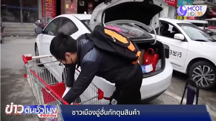 ชาวเมืองอู่ฮั่นพากันกักตุนสินค้า ทั้งอาหารและสิ่งของจำเป็นต่อการดำรงชีพ ตามซูเปอร์มาเก็ตพบว่าสินค้าถูกซื้อไปจากชั้นวางจนแทบไม่เหลือ ขณะที่พนักงานในร้านต่างสวมชุดป้องกันการติดเชื้อ ชาวเมืองอู่ฮั่นบางคนบอกว่าเวลานี้สินค้าต่างๆ แพงขึ้น แต่เมื่อเทียบกับความจำเป็นว่าต้องกินต้องใช้ ปัญหาเรื่องราคาสินค้าจึงกลายเป็นเรื่องรอง ขณะที่สถานการณ์แพร่ระบาดของเชื้อโควิด 19 ในมณฑลหูเป่ยยังไม่ลดลง แต่ละวันยังคงมีผู้เสียชีวิตและติดเชื้อเพิ่มขึ้นอย่างต่อเนื่อง หลังจากที่เชื้อเริ่มแพร่ระบาดในเมืองอู่ฮั่นมาตั้งแต่เดือนธันวาคมปีที่แล้ว .