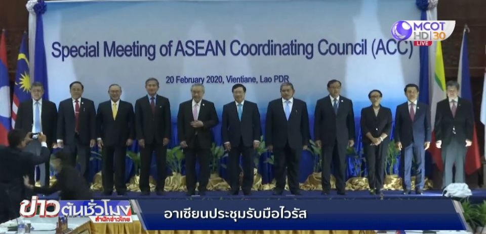 สปป ลาว 20 ก.พ.-รมต.ต่างประเทศอาเซียน ประชุมนัดพิเศษที่นครหลวงเวียงจันทน์ของ สปป.ลาว เพื่อหารือสถานการณ์การแพร่ระบาดของโรคโควิด-19 โดยอาเซียนจะร่วมมือกันอย่างใกล้ชิดในการรับมือการแพร่ระบาด เพื่อความปลอดภัยของประชาชนในประชาคมอาเซียน ขณะที่ รมต.ต่างประเทศจีน เดินทางมาพูดคุยนอกรอบกับรัฐมนตรีของแต่ละประเทศด้วย