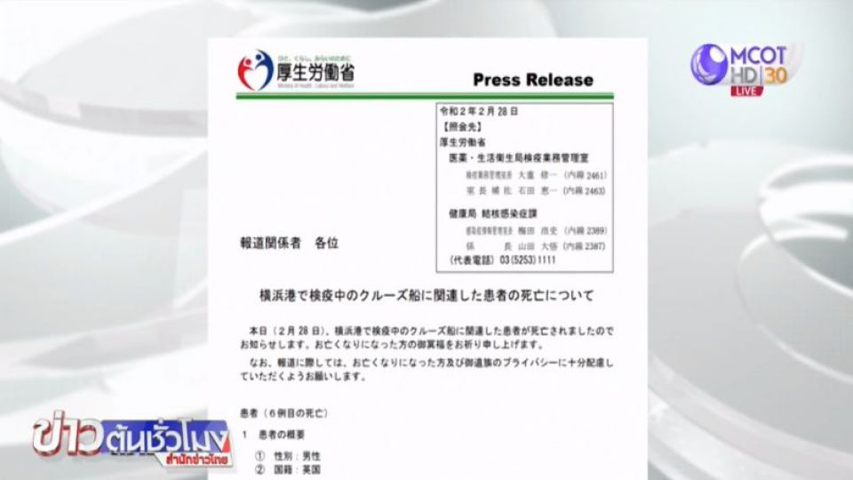 ญี่ปุ่น 29 ก.พ.- ผู้ว่าราชการจังหวัดฮอกไกโดของญี่ปุ่น ประกาศภาวะฉุกเฉินเป็นเวลา 3 สัปดาห์ เพื่อรับมือกับการแพร่ระบาดของเชื้อไวรัสโคโรนา 2019