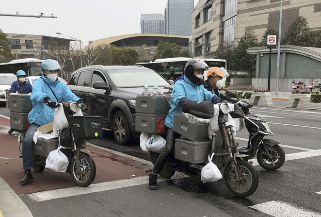 In an attempt not to contract the new coronavirus, food product deliverers in the Chinese capital have worn masks and gloves since earlier this year, while some of them have tried to stay at least 2 meters apart from a receiver.