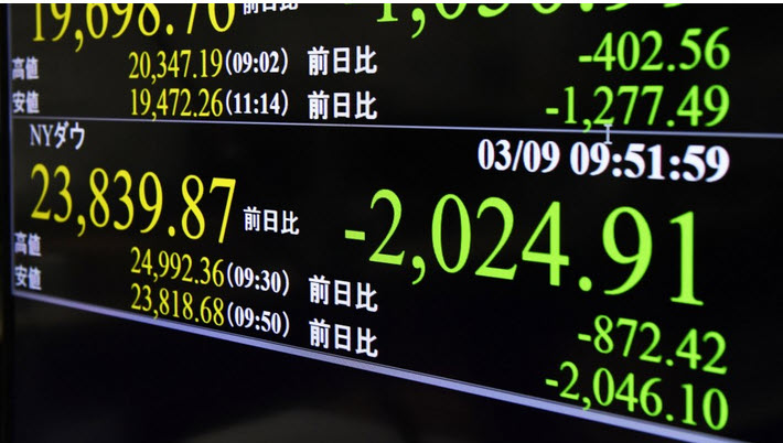 The plunge of the U.S. stock market came as local media reported that the number of people infected with the new coronavirus in the United States has topped 500, prompting investors to unload shares on fears that the world’s largest economy will slow down.