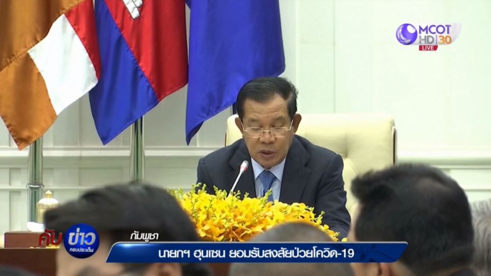 แคมโบเดีย เดลี สื่อของทางการกัมพูชารายงานว่านายกรัฐมนตรีฮุน เซน ของกัมพูชา เปิดเผยกับสื่อว่าเมื่อวานนี้ เขาเริ่มมีอาการคัดจมูกและไม่ค่อยสบายเนื้อตัว จึงเตรียมเข้ารับการตรวจร่างกายว่าป่วยเป็นโรคติดเชื้อไวรัสโคโรนา 2019 หรือโรคโควิด-19 หรือไม่ หากป่วยจริงก็จะได้กักตัวเองและรักษาตัวโดยเร็ว นอกจากนี้นายกรัฐมนตรีฮุน เซน ยังกล่าวถึงการปล่อยข่าวลวงเรื่องที่เขาติดเชื้อโควิด-19 และกำลังรักษาในโรงพยาบาลสิงคโปร์ ว่าพร้อมที่จะดำเนินการจับกุมกับผู้ปล่อยข่าวลือดังกล่าวทันที พร้อมขอให้ประชาชนอย่างตื่นตระหนก อย่าหวาดกลัว และจงเชื่อมั่นในระบบสาธารณสุขของประเทศ ทั้งนี้กัมพูชาเพิ่งประกาศยืนยันพบผู้ป่วยโควิด-19 รายแรก เป็นชายชาวกัมพูชาวัย 35 ปี ในเมืองเสียมเรียบ หลังจากที่เขาได้ติดต่อใกล้ชิดกับชายชาวญี่ปุ่นคนหนึ่งที่ติดเชื้อไวรัสดังกล่าว
