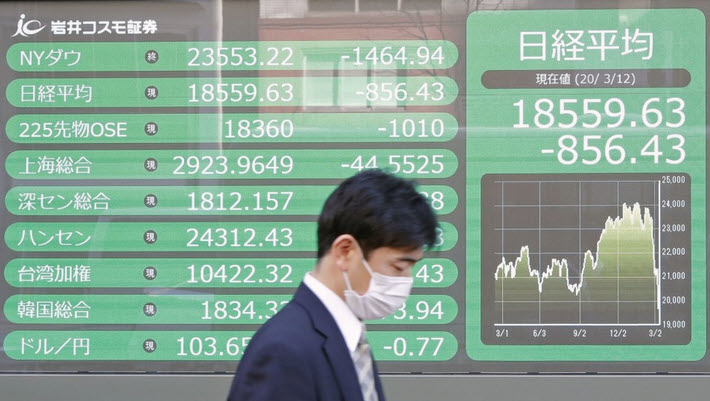 The Dow Jones Industrial Average on Thursday dived almost 10 percent in its largest drop since the Black Monday stock market crash in 1987, as investors became increasingly concerned about the outlook for the global economy after U.S. President Donald Trump said he would restrict travel from Europe in the country’s latest effort to fight the pandemic.
