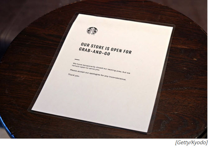 American coffee chain operator Starbucks Corp. said Sunday it will provide drinks and food only for takeout in the United States and Canada, while shutting down outlets in shopping malls and on college campuses.