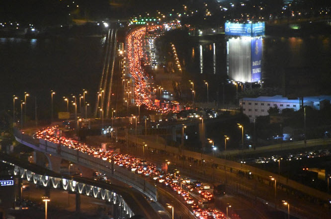 In Johor Baru, Malaysia’s southernmost city on the border with Singapore, the exodus of people caused traffic to be snarled on Tuesday night with a long snakelike line of vehicles heading to Singapore’s immigration checkpoint.