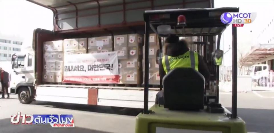 รัฐบาลจีนจัดส่งหน้ากากอนามัยไปยังเกาหลีใต้ เพื่อช่วยควบคุมการแพร่ระบาดของโรคโควิด-19 กาชาดเกาหลีใต้ระบุว่า หน้ากากเหล่านี้จะส่งต่อไปให้ผู้ที่มีความจำเป็นต้องใช้ ขณะที่เกาหลีใต้เวลานี้มีผู้ติดเชื้อทั้งหมดกว่า 8,600 คน และมีผู้เสียชีวิตแล้ว 95 คน
