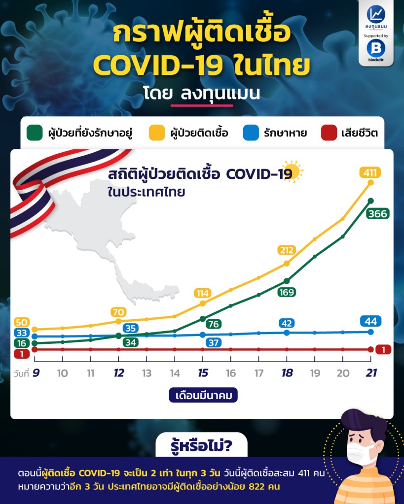 March 22, 2020March 22, 2020 apecasc กราฟผู้ติดเชื้อ COVID-19 ในไทย 21 มี.ค. 2020 โดย ลงทุนแมน CR: ลงทุนแมน Share this: Click to share on X (Opens in new window) X Click to share on Facebook (Opens in new window) Facebook Like Loading...