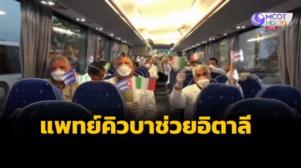 อิตาลี 23 มี.ค. – คณะแพทย์และบุคลากรทางการแพทย์คิวบาเดินทางถึงอิตาลี เพื่อช่วยเหลือหยุดยั้งการแพร่ระบาดของเชื้อไวรัสโคโรนา 2019