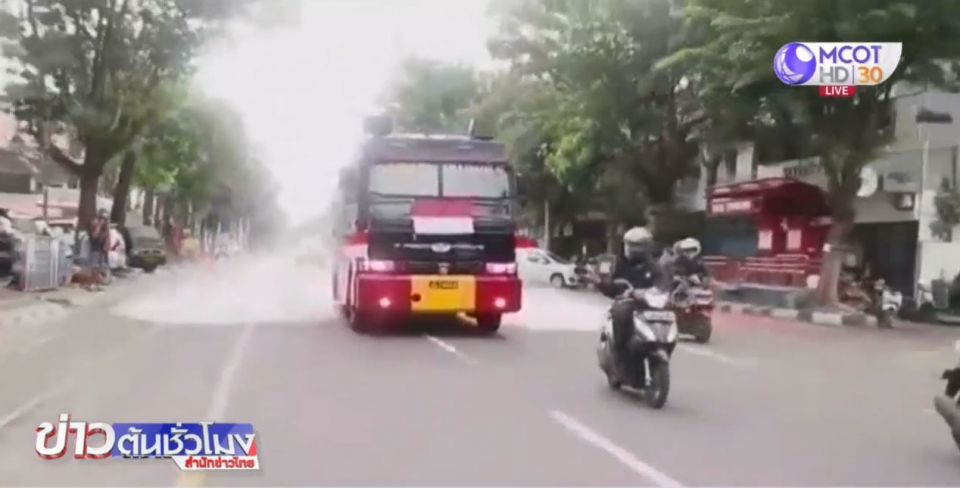 อินโดนีเซีย 29 มี.ค. – อินโดนีเซียพ่นยาฆ่าเชื้อตามท้องถนน ป้องกันโควิด-19 ระบาด ขณะที่ทางการกรุงจาการ์ตา ยืดเวลาการใช้มาตรการฉุกเฉินออกไปอีก 2 สัปดาห์ ขณะที่อินโดนีเซียมีผู้ติดเชื้อโควิด-19 จำนวน 1,155 คน เสียชีวิต 102 คน