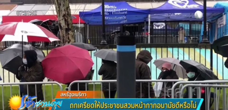 สหรัฐ 2 เม.ย.- รัฐบาลสหรัฐอยู่ระหว่างหารือกันถึงความเหมาะสมในการสวมใส่หน้ากากอนามัยตามสถานที่สาธารณะ เพื่อป้องกันการแพร่ระบาดของโควิด-19 ด้านประธานาธิบดีโดนัลด์ ทรัมป์ ผู้นำสหรัฐ แนะให้ใช้ผ้าพันคอปิดปากปิดจมูกแทนการใช้หน้ากากอนามัย ระบุผู้ใส่หน้ากากอนามัยควรเป็นเฉพาะบุคคลากรการแพทย์ ผู้ป่วย และบุคคลใกล้ชิดผู้ป่วย