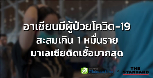 ภาพรวมสถานการณ์ผู้ติดเชื้อในอาเซียนเป็นดังนี้ มาเลเซีย (2,908 ราย) ฟิลิปปินส์ (2,311 ราย) ไทย (1,771 ราย) อินโดนีเซีย (1,677 ราย) สิงคโปร์ (1,000 ราย) ตามมาด้วยเวียดนาม (218 ราย) บรูไน (131 ราย) กัมพูชา (109 ราย) เมียนมาร์ (16 ราย) และประเทศที่มีรายงานการพบผู้ติดเชื้อท้ายสุดในย่านนี้อย่างลาว (10 ราย)