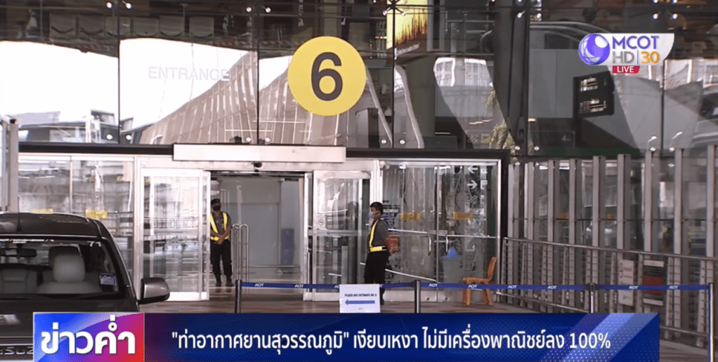 น.ท.สุธีรวัฒน์ สุวรรณวัฒน์ ผู้อำนวยการท่าอากาศยานสุวรรณภูมิ ระบุว่า ขณะนี้สนามบินสุวรรณภูมิไม่มีเที่ยวบินพาณิชย์ลงแล้ว 100% คงเหลือเพียงเที่ยวบินขนส่งสินค้า (Cargo) และผู้มีเอกสิทธิ์ทางการทูต ซึ่งได้รับอนุญาตตามประกาศ กพท.เท่านั้น จึงสามารถเดินทางได้.