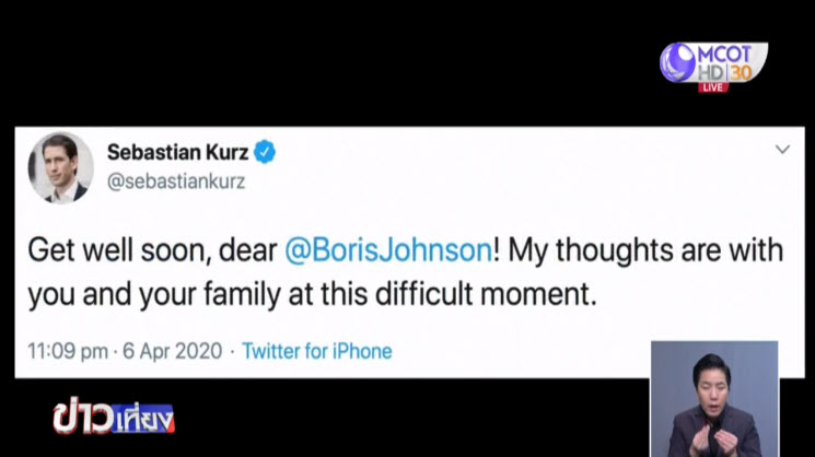 สหรัฐ 7 เม.ย.- บรรดาผู้นำโลกต่างส่งคำอวยพรและกำลังใจให้แก่นายกรัฐมนตรีอังกฤษ ซึ่งล่าสุดถูกนำตัวเข้าห้องไอซียู เพราะอาการจากโรคโควิด-19 ทรุดหนัก