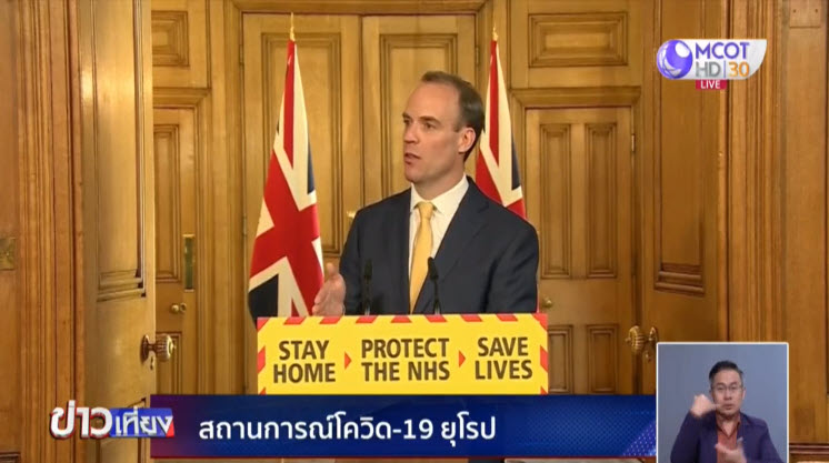 นายโดมินิก ร้าบ รัฐมนตรีต่างประเทศอังกฤษ ซึ่งปฏิบัติหน้าที่แทนนายกรัฐมนตรีบอริส จอห์นสัน ที่รักษาตัวอยู่ในโรงพยาบาลจากโรคติดเชื้อโควิด-19 ยืนยันรัฐบาลยังคงตั้งเป้าตรวจหาเชื้อให้กับประชาชนทั่วไปและบุคลากรทางแพทย์ให้ได้วันละ 100,000 คนภายในสิ้นเดือนนี้ ขณะที่ เซอร์ แพทริค วัลแลนซ์ หัวหน้าที่ปรึกษาด้านวิทยาศาสตร์ของรัฐบาล ระบุยังต้องใช้เวลาอีกกว่าสัปดาห์ รวมทั้งข้อมูลอีกจำนวนมากที่จะบ่งชี้ว่ามาตรการรักษาระยะห่างทางสังคมมีส่วนทำให้แนวโน้มจำนวนผู้ติดเชื้อรายใหม่ในอังกฤษเริ่มคงที่