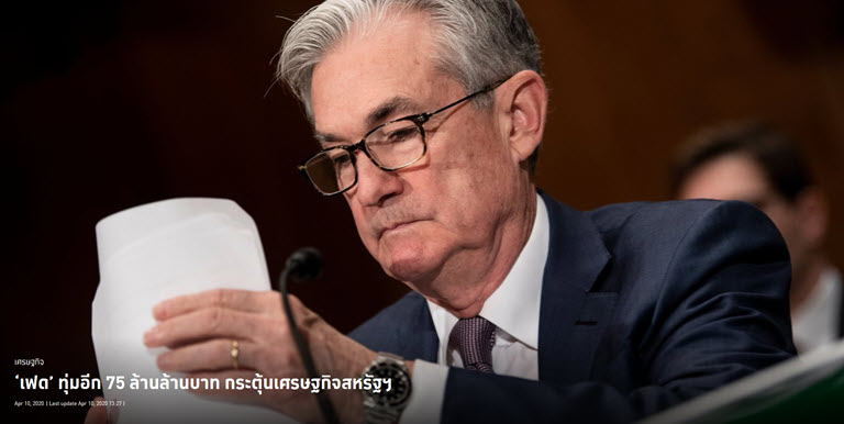 ธนาคารกลางของสหรัฐฯ (เฟด) แถลงข่าวชี้แจงแนวโน้มการอัดฉีดเม็ดเงินอีก 2.3 ล้านล้านดอลลาร์สหรัฐฯ หรือประมาณ 75 ล้านล้านบาท เข้าสู่เศรษฐกิจสหรัฐฯ ผ่านโปรแกรมใหม่ที่จะช่วยบริษัทรวมไปถึงรัฐบาลท้องถิ่นที่ได้รับผลกระทบจากไวรัสโคโรนาสายพันธุ์ใหม่ 2019 หรือ โควิด-19