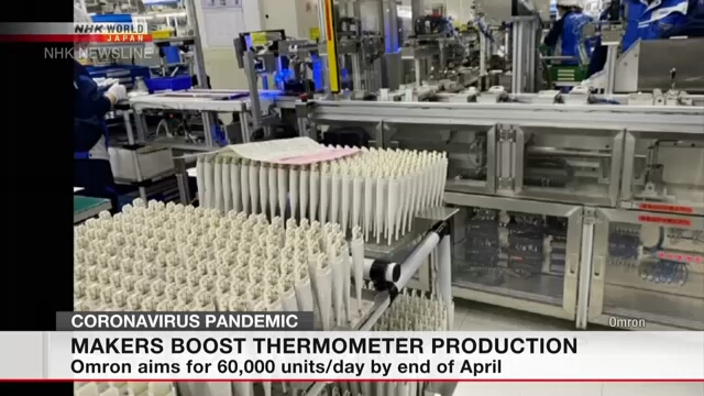 บริษัทอิเล็กทรอนิกส์ โอมรอน ได้เพิ่มกำลังการผลิตร้อยละ 50 เมื่อเดือนที่แล้ว ขณะนี้ ได้ผลิตเทอโมมิเตอร์ราว 50,000 เครื่องต่อวันที่โรงผลิตในจีน ทางบริษัทจะเพิ่มกำลังการผลิตมากขึ้นเป็นวันละ 60,000 เครื่องภายหลังในเดือนนี้