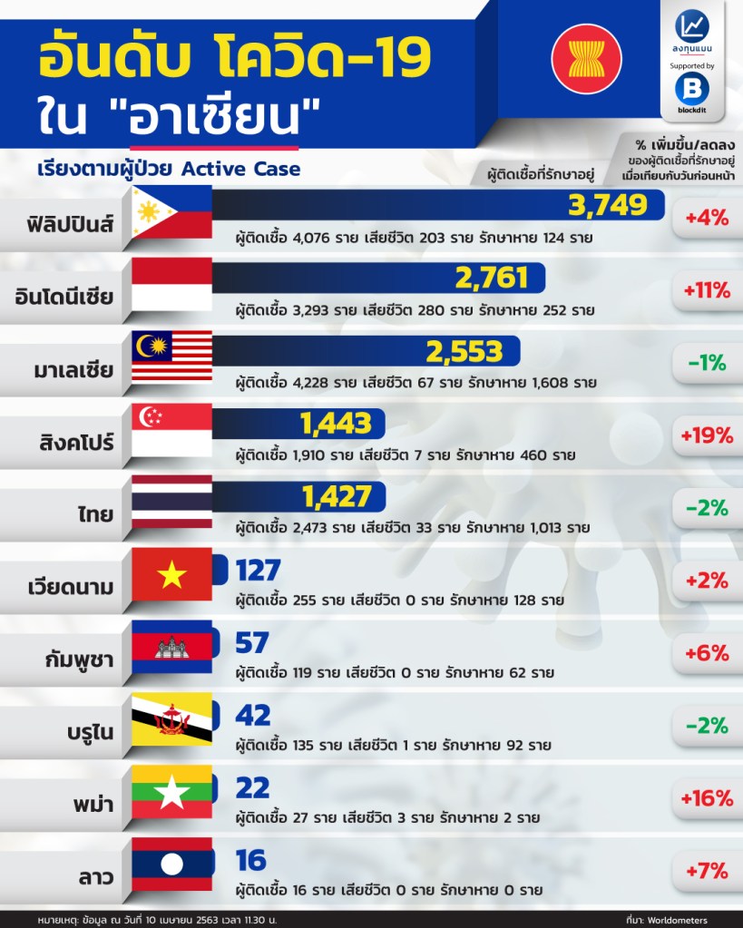 April 11, 2020April 11, 2020 apecasc อันดับ โควิด-19 ในอาเซียน 10 เม.ย. 2020 ลงทุนแมน CR: ลงทุนแมน Share this: Share on X (Opens in new window) X Share on Facebook (Opens in new window) Facebook Like Loading...