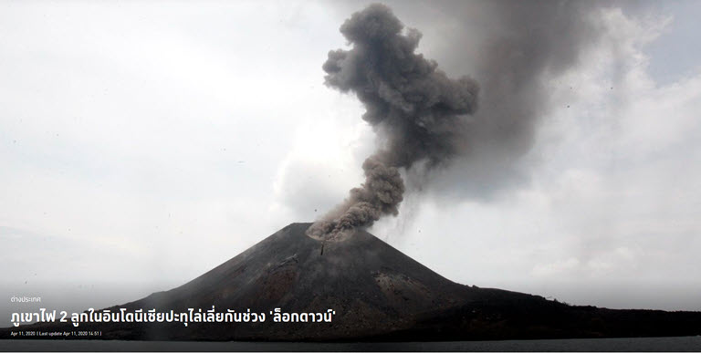 หน่วยงานด้านธรณีวิทยาอินโดนีเซียระบุ ภูเขาไฟ ‘เมราปี’ และ ‘อะนักกรากะเตา’ ปะทุพ่นควันเมื่อวันที่ 10 เม.ย. ตรงกับช่วงที่รัฐบาลประกาศล็อกดาวน์ จำกัดการเดินทางในบางพื้นที่ของกรุงจาการ์ตาเพื่อป้องกันโรคโควิด-19