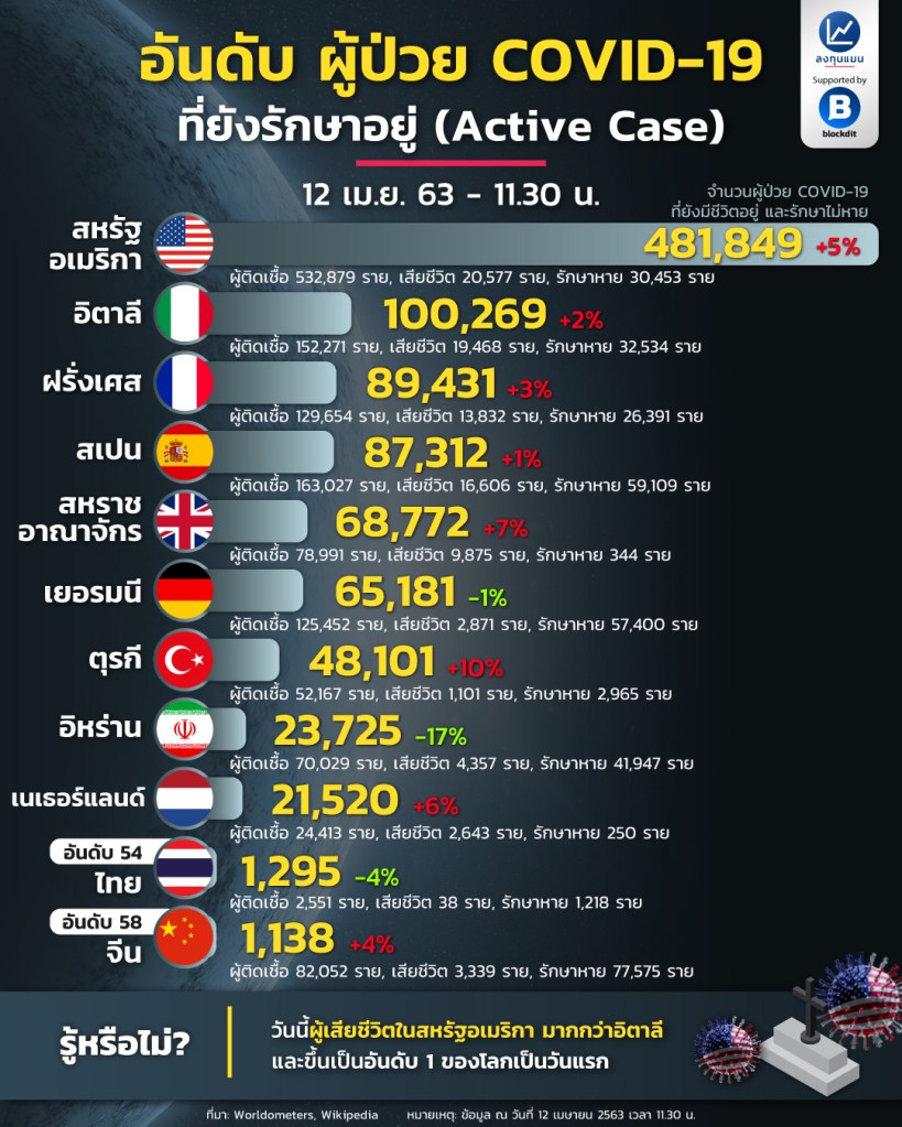 ลงทุนแมน นำเสนอตัวเลขแบบ Active Case คือลบรักษาหายกับเสียชีวิตนะครับ ตัวเลขนี้อัปเดตรวม 33 รายวันนี้แล้ว